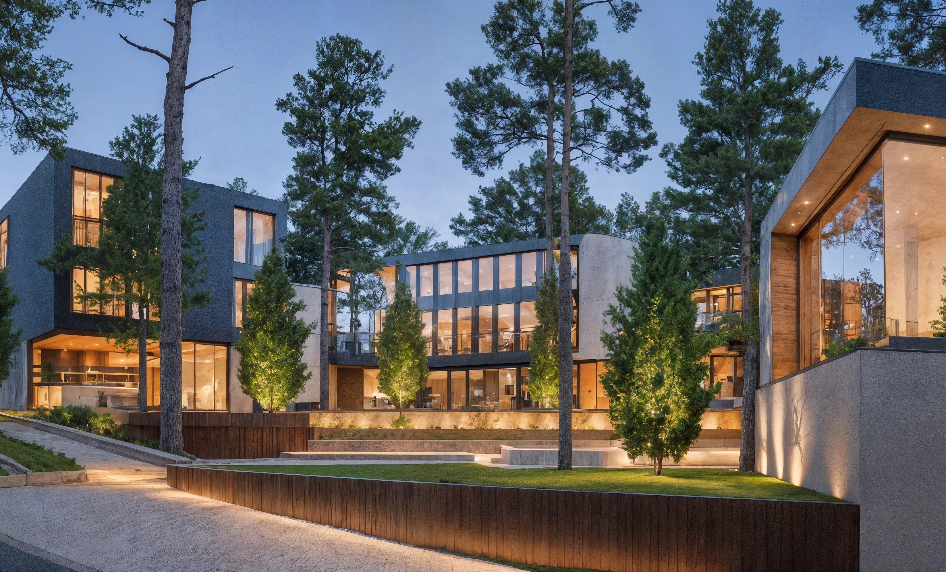 The architectural and interior design emphasizes natural materials, expansive glazing, and a minimalist aesthetic, creating light-filled, comfortable, and functional spaces. The video presentation and visualizations showcase the vision of a settlement where architecture and nature coexist in harmony.