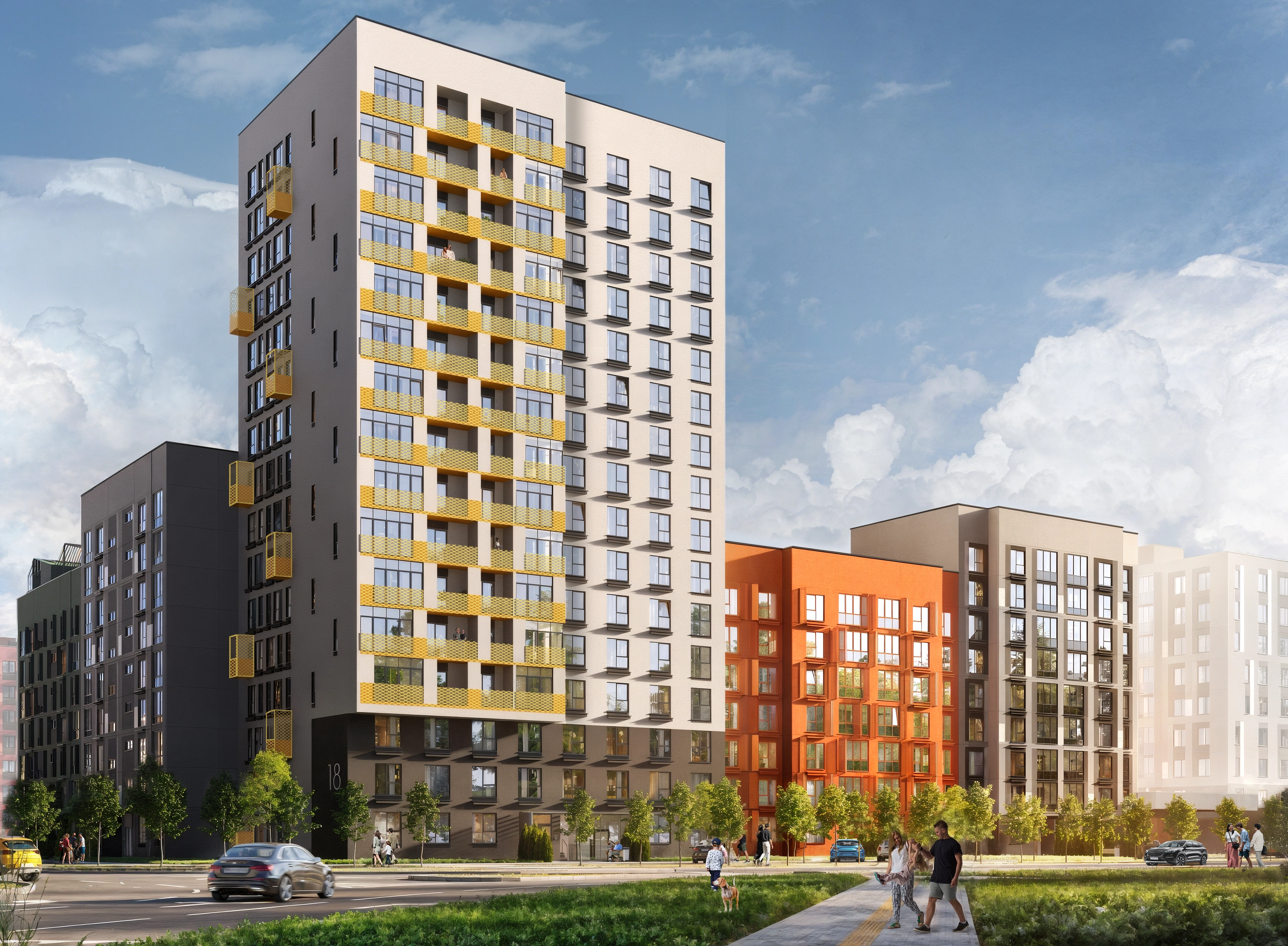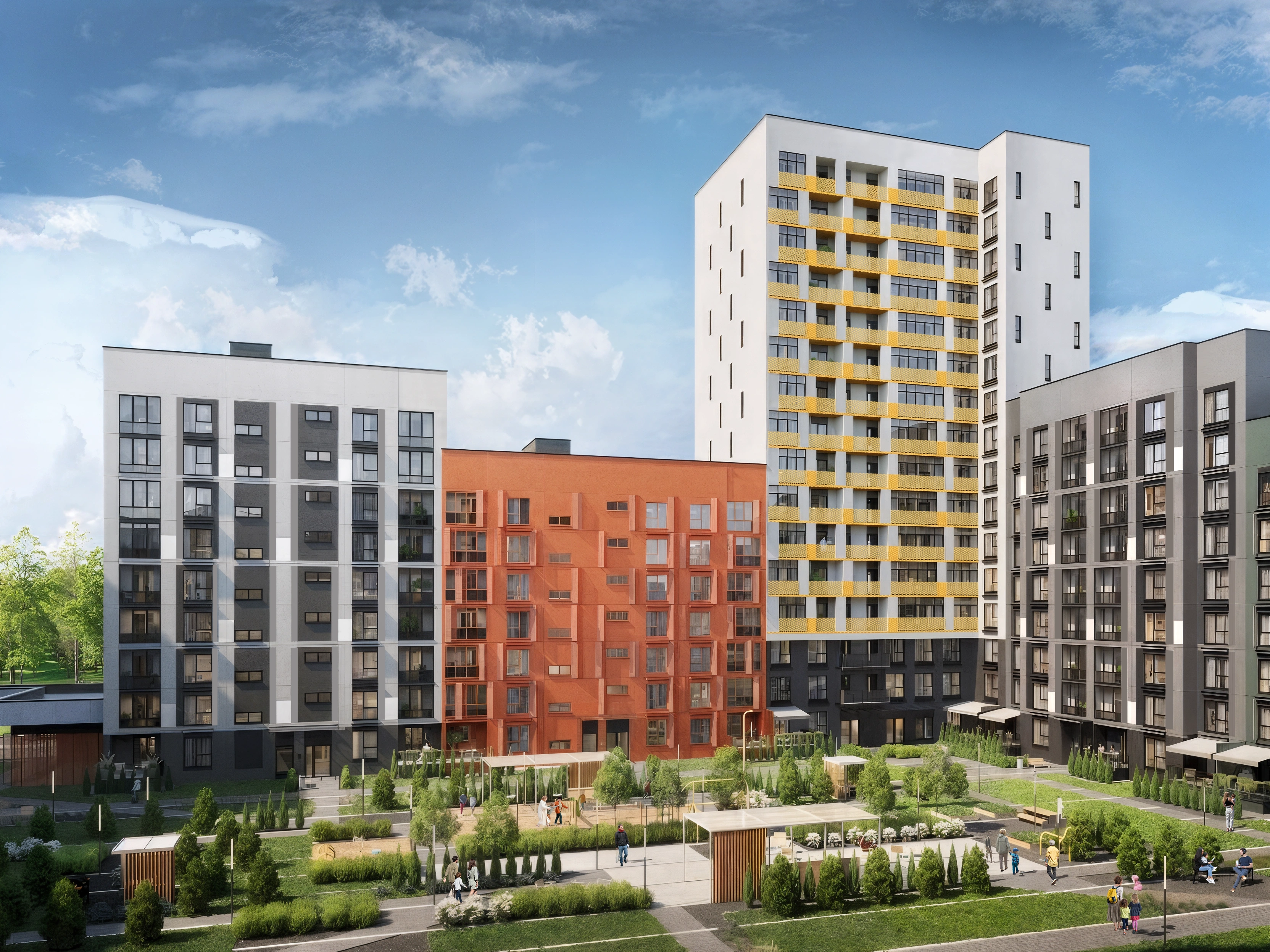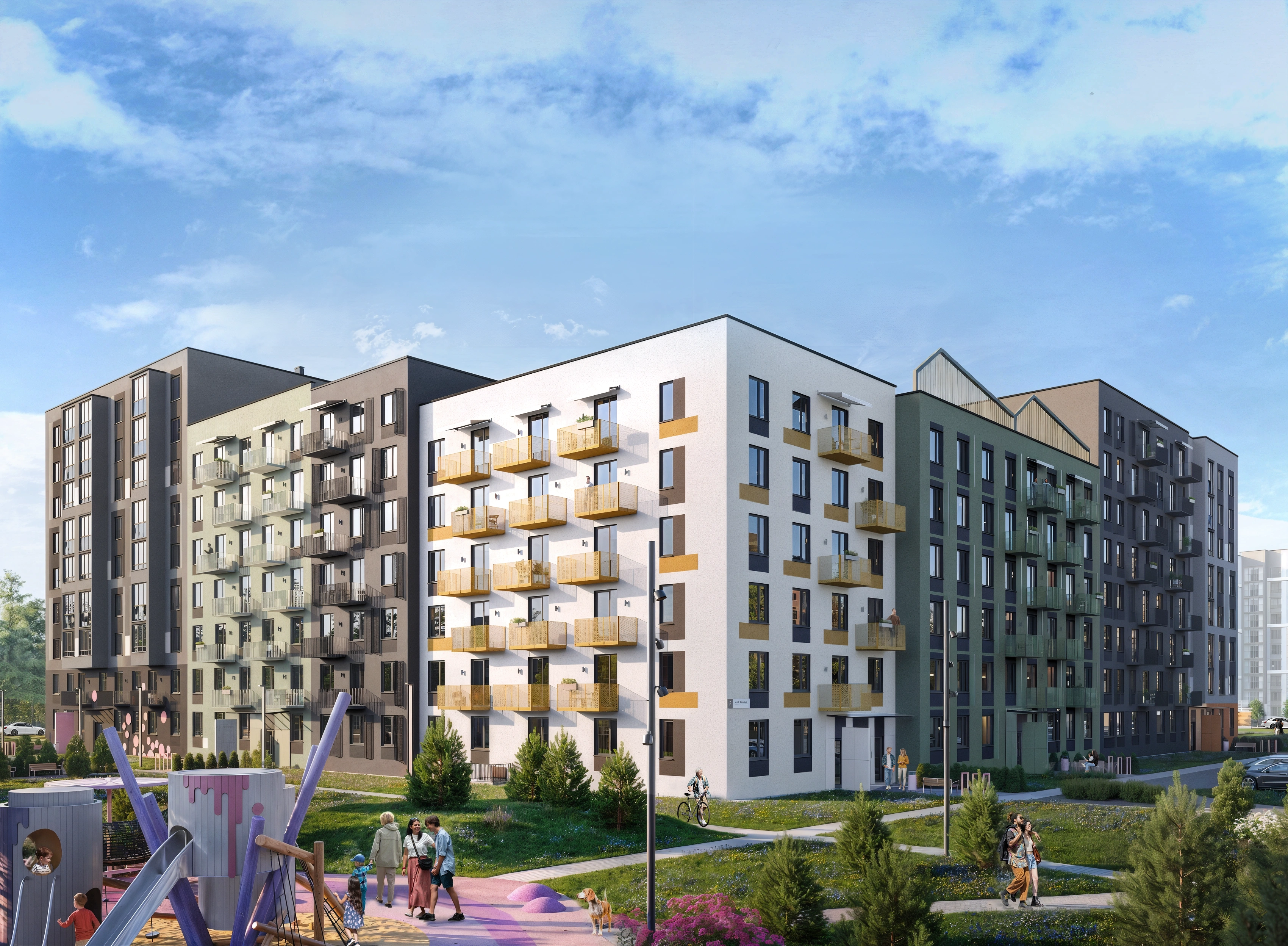 Apartment mix approximately 25–105 m² with 2.63–2.71 m clear heights; ground‑floor units gain terraces, upper levels have summer rooftop conservatories and private decks; selected sections are delivered with ready‑made finishes for a “quiet entrance” experience.
